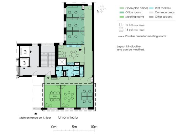 | Office space | 4 | 207 m2 | Free | Office space on the 4th floor with office rooms and meeting rooms. Views to Unioninkatu and the inner courtyard. |