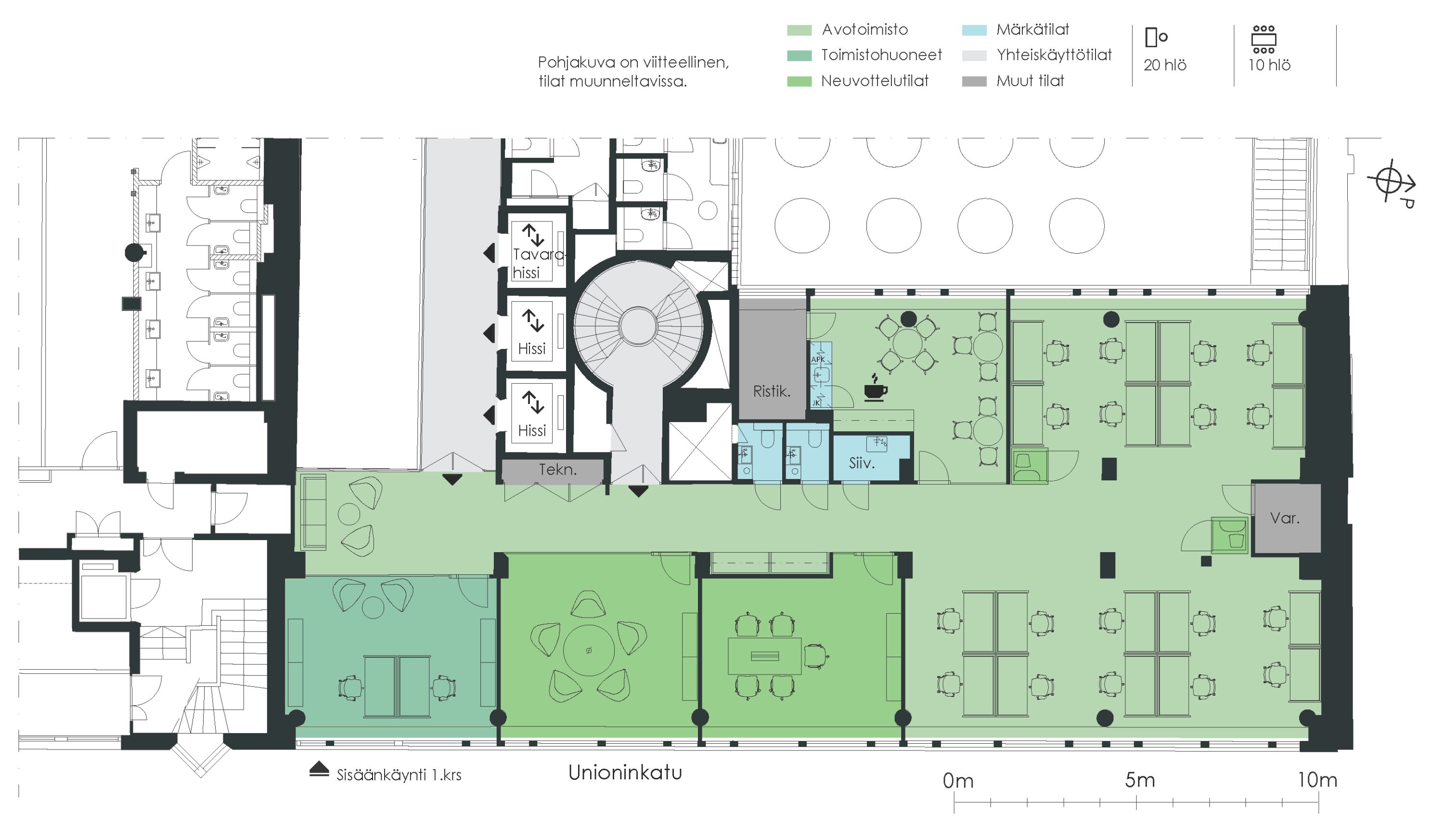 | Toimistotila | 5 | 500 m2 | Vapaa | Avotoimisto jossa tilankäyttö on tehokasta. Valoaukko takaa huoneiston ainutlaatuisen valaistuksen. |