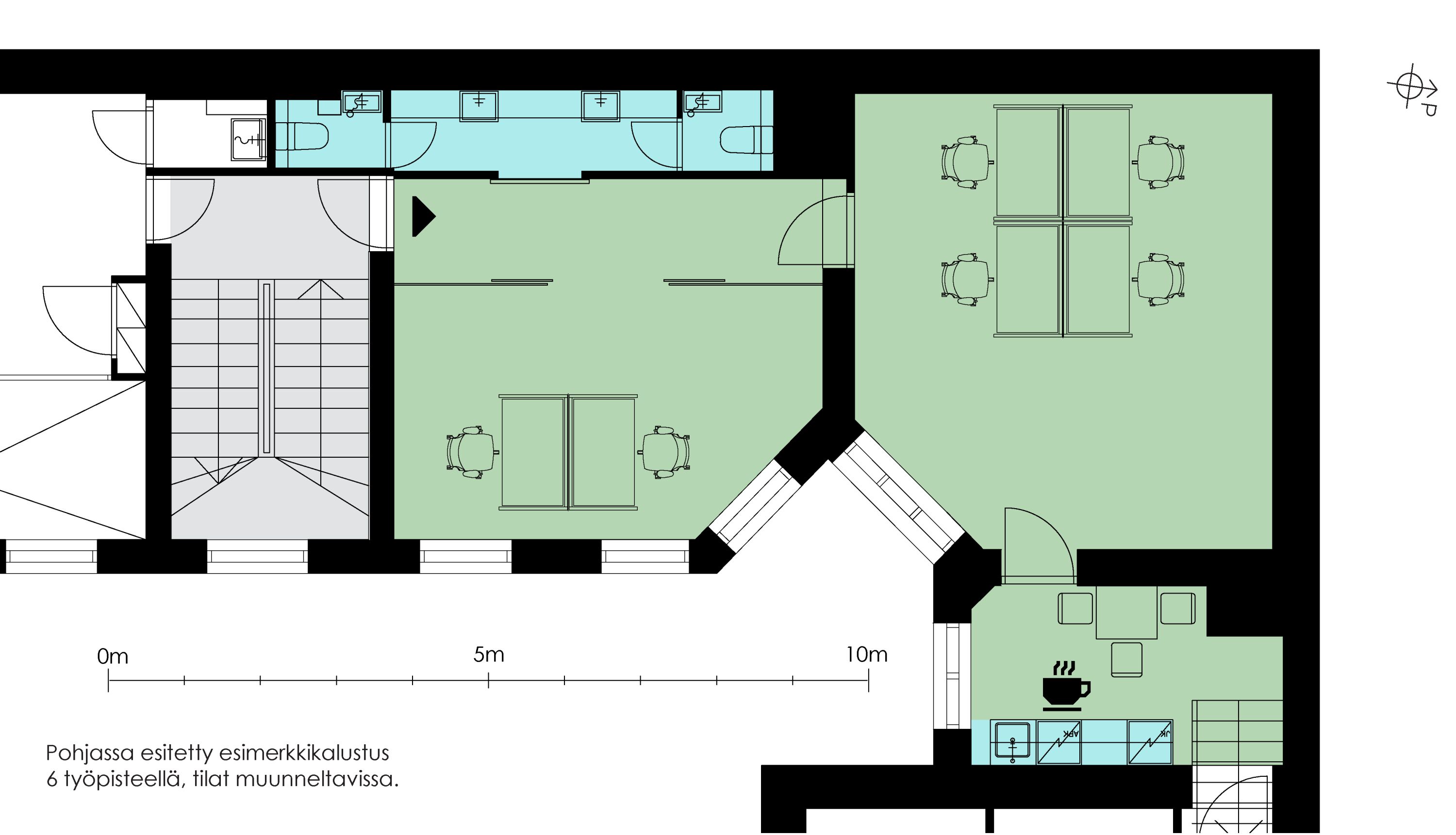 | Toimistotila | 3 | 63 m2 | Vapaa | Pieni toimisto sisäpihan rauhassa. |